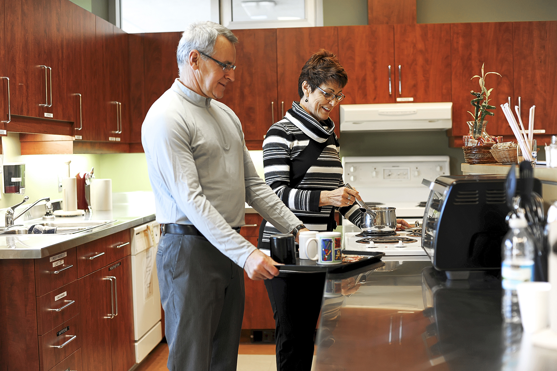 The Hôtellerie is connected to the Rimouski regional hospital by an interior corridor. A safe and convenient system of smart cards and keys allows you to go from the hospital to your room without needing to step outside. A well-equipped kitchen allows you to prepare your dinner, just like at home. A friendly dining room allows you to share your meals comfortably.